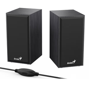 Genius SP-HF180 6W Wooden Desktop USB 2.0 Stereo Speakers with 3.5mm Audio Jack & Volume Control, Black