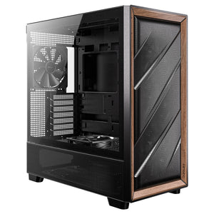 Antec FLUX Mid Tower PC Case - Tempered Glass, Black/Wood, 5 PWM Fans, USB-C, E-ATX/ATX/mATX/ITX Compatibility