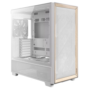 Antec FLUX Mid Tower PC Case - Tempered Glass, White/Wood, 5 PWM Fans, USB-C, E-ATX/ATX/mATX/ITX Compatibility